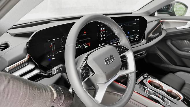 2026 아우디 A6 풀체인지 모델의 실내는 운전자와 탑승자 모두를 위한 미래지향적인 공간으로 탈바꿈했습니다. 가장 먼저 눈길을 끄는 것은 11.9인치 디지털 계기판, 14.5인치 중앙 디스플레이, 그리고 10.9인치 보조 디스플레이로 구성된 파노라믹 인터페이스입니다. 이 세 개의 디스플레이는 유기적으로 연결되어 운전의 즐거움과 정보 접근성을 동시에 극대화합니다. 아우디만의 독자적인 MMI 시스템은 한층 더 진화하여, 터치 반응 속도는 물론 사용자 인터페이스(UI) 측면에서도 놀라울 정도로 직관적인 사용성을 제공합니다. 운전자는 필요한 정보를 빠르고 정확하게 얻을 수 있으며, 동승자를 위한 별도의 화면까지 제공되어 각자의 엔터테인먼트 경험을 독립적으로 즐길 수 있게 배려했습니다.