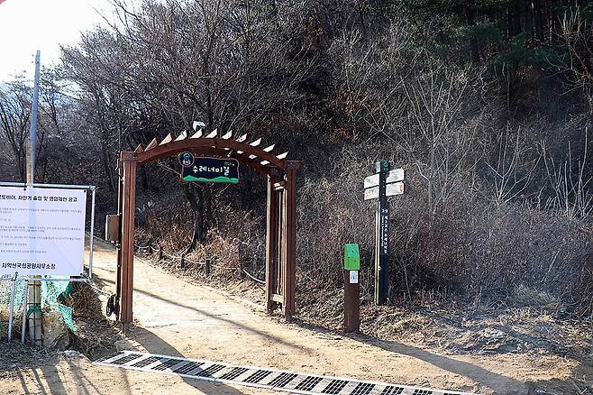 추천 코스: 국립공원 사무소 → 수레너미교 → 한다리골 → 숲 속 놀이터 → 수레너미재 (왕복 약 13.4km)