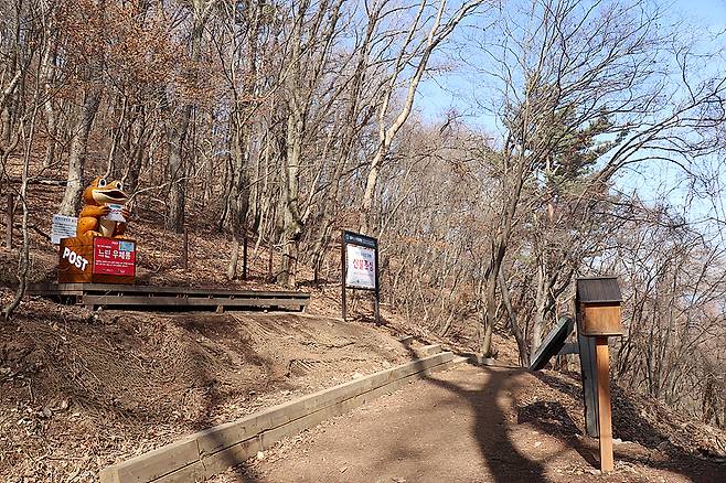 수백 년을 버텨온 엄나무가 자리하고 있고, 그 아래에서 잠시 쉬다 보면 자연스럽게 길의 의미를 되돌아보게 됩니다. 또한 이곳에는 느린 우체통이 있어 1년 후 나에게 보내는 편지를 남길 수도 있습니다. 그래서 단순한 산행을 넘어, 기억을 남기는 경험으로 이어집니다.
