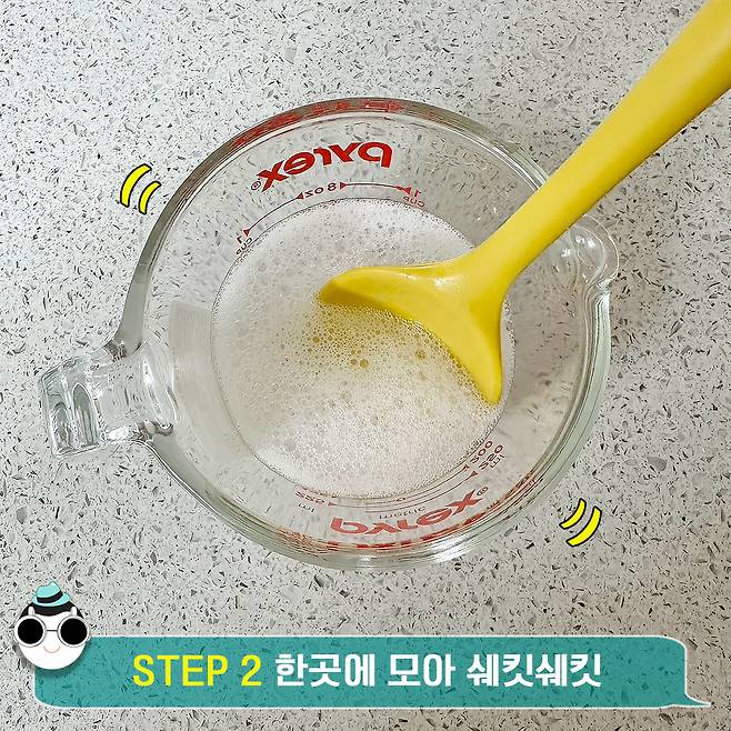이렇게 모인 주방세제와 물을 열심히 섞어주세요.
