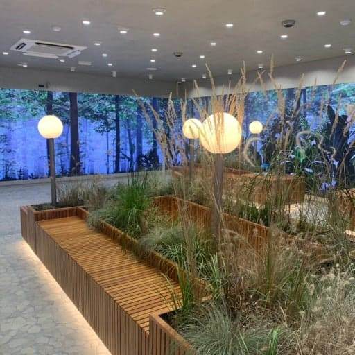 1층에 들어서면 30m 크기의 대형 미디어월이 방문객을 맞이합니다. 이곳에서는 계절별 자연 영상과 소리, 향기가 어우러져 도심 속에서 색다른 감각을 느낄 수 있지요.