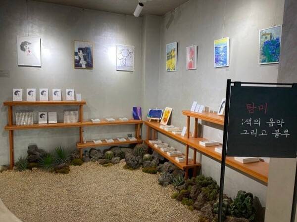 서점 한편에는 미니갤러리가 마련되어, 이달의 독립출판 작가 작품이나 소규모 전시가 열립니다.