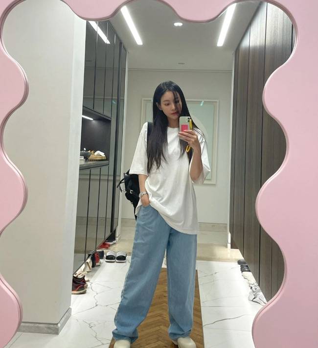 오연서는 박시한 스타일의 흰 티와 와이드진을 매치해 활동성이 좋으면서도 힙한 느낌의 데일리룩을 완성한 모습이에요.