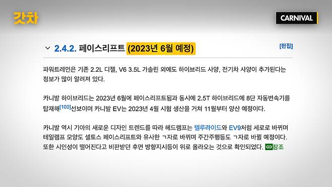9. 카니발 페이스리프트 언제 출시되나?