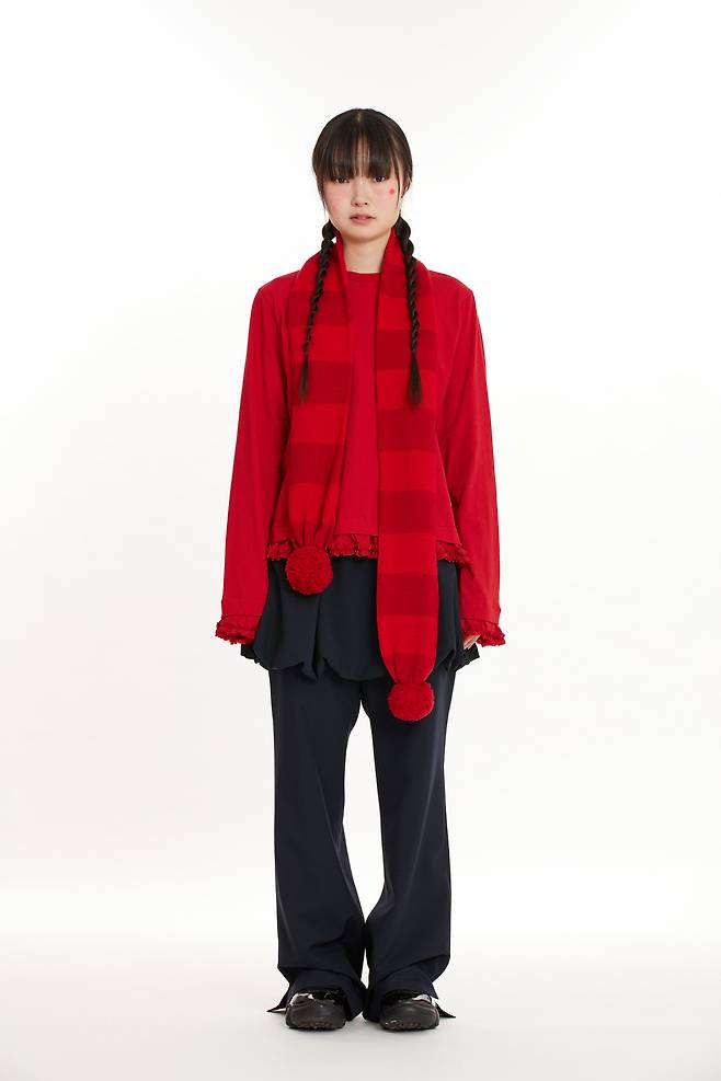 과장을 보태면 머플러는 재킷이나 다름없다. 이 클래식 겨울 액세서리는 목과 머리에 둘러 체온을 높이는 데 즉효지만, 보통 150cm가 훌쩍 넘는 길이를 아우르는 면적과 가지런한 실루엣 때문에 적당히 마음에 들면서 적당히 쿨한 아이템을 고르기란 의외로 까다롭다. 그러니 키치함과 낙낙한 핏을 섞기를 좋아하는 베니조프로덕트(VENYJOPRODUCT)에서 선보인 머플러를 주목하자. 브랜드 시그니처인 하트 성조기 후디에 매치하거나 텍스트 프린트를 패턴온패턴 스타일로 연출하기 좋다. 겪어본 적 없는 옛날에의 향수를 이미지화한 듯한 브랜드 복복(BOCBOK)에서도 귀여운 머플러를 찾을 수 있다. 스트라이프 디자인에 폼폼 장식을 더한 아이템으로, 올겨울 눈에 띄는 트렌드인 레드 색상은 이미 품절이다.