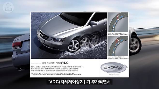 시리우스 엔진 특유의 '웽' 하는 간드러지는 소리 대신 투박한 엔진음이 들려왔지만 밟으면 톡 튀어나가는 응답성으로 실용 구간에서 쾌적한 주행 성능을 제공했습니다. 대대로 북미 시장에 초점을 맞추는 소나타답게 승차감은 여전히 부드러웠지만, 전작의 전륜 더블위시본과 전자제어 서스펜션에 더해 자세 제어 장치 'VDC'가 추가되면서 전반적인 주행 안정성이 향상됐습니다. 높아진 강성의 신형 플랫폼도 제 몫을 톡톡히 했죠.