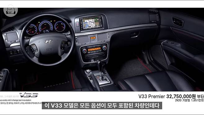 이 V33 모델은 모든 옵션이 모두 포함된 차량인데다 출고 가격이 상당히 비쌌기 때문에 '그랜저 TG S380' 모델과 마찬가지로 엄청난 희소성을 자랑했어요. 낮은 단수로 지적받던 2.4L 모델의 4단 자동 변속기를 스리슬쩍 5단으로 변경한 것도 이때죠.
