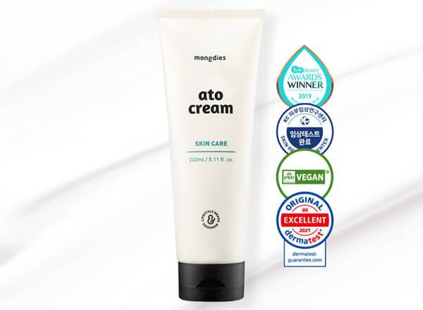 몽디에스 아토크림은 한때 품절 대란을 빚기도 했던 제품이다. 몽디에스 아토크림은 1회 사용으로 100시간 피부 보습 지속을 도모할 수 있는 제품으로, 바를 시 건조에 의한 일시적 가려움 완화에 도움을 줄 수 있다. 전 성분 EWG 그린 등급의 엄선된 성분으로 이뤄진 제품으로, 이브 비건 인증, 미국 PETA 인증, 독일 더마테스트 엑설런트 등급 등을 획득한 바 있다. 공식몰에서 240㎖ 용량 제품을 1+1 구성으로 33,150원에 판매 중이다.