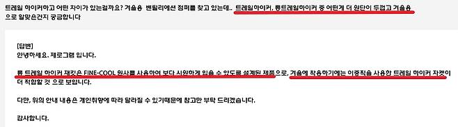 바람막이 플러스 내피, 디자인 활용도 좋아 보임. 작년에 방수자켓에서도 여자분들 벤틸 차별 받았는데 여기도 그러네요. ㅎㅎ
