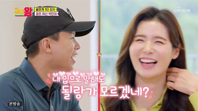 박진이 프로는 "'골프왕' 너무 잘 보고 있다. 기대 많이 하고 왔다"고 미소지었다. 양세형은 그런 박진이 프로의 모습을 보고 눈을 떼지 못했다.