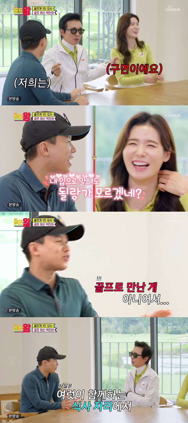 이에 김국진은 "말해도 되는 거야?"라고 물었고, 양세형은 "조금 조심스럽다. 박진이 프로와 골프로 만난 게 아니"라고 말해 김국진을 놀라게 했다.