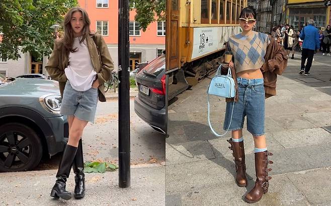 편한 스니커즈나 청키한 굽이 돋보이는 부츠를 착용해주면