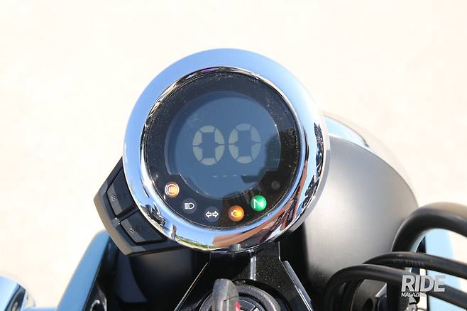 원형 계기판은 심플한 구성의 LCD 방식이 적용됐다. 속도계를 중심으로 상단에 연료계, 하단에 적산거리계를 더해놓았고, 그 아래로 각종 경고등을 배치해놓았다. 키온을 하면 두 개의 동그라미가 나타나 마치 눈을 깜박이는 듯한 모션을 보여주는데 나름 귀여움을 배가시키는 요소. 변속단을 표시하는 기능은 없지만, 그래봤자 4단 변속기기도 하고 로터리 방식이라 중립 기어 표시등만 있어도 충분하다. 헤드라이트를 비롯한 모든 등화류에는 LED를 적용해 광량과 내구성은 높이면서 전력 소모는 줄였다.