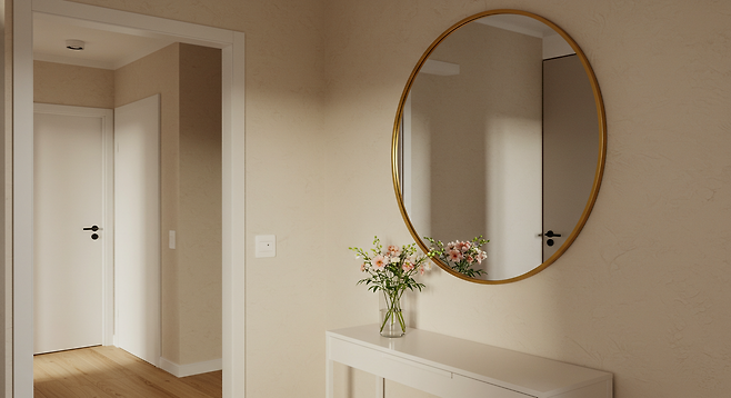 특히 부드러운 곡선 형태를 가진 원형 거울은, 시각적으로 안정감을 주고 집안의 기운을 부드럽게 이어주는 데 도움이 됩니다