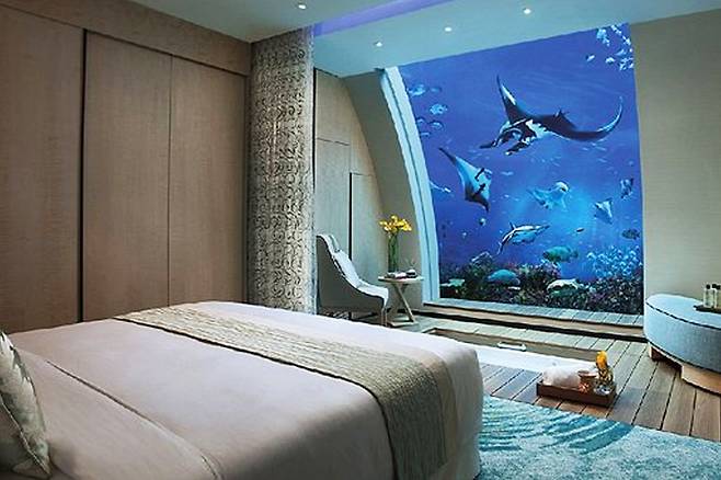 센토사섬에는 6개의 초호화 호텔이 자리하고 있으며, 그중 에쿠아리우스 호텔(Equarius Hotel)은 객실에서 바로 아쿠아리움을 감상할 수 있는 독특한 경험을 제공합니다. 다양한 호텔 옵션은 방문객들에게 완벽한 휴양을 선사합니다.