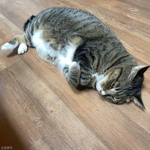 처음 집에 왔을 때는 2.7kg밖에 나가지 않았지만, 현지 씨의 애정을 듬뿍 받고 자라 현재는 8kg이나 나가는 뚱냥이로 확대됐다는데.