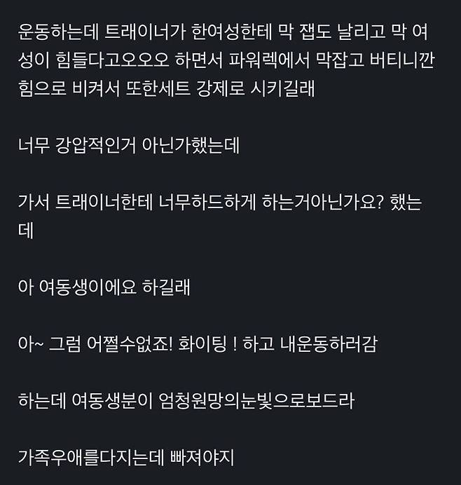 여성 회원에게 너무 강압적이였던 헬스장 트레이너