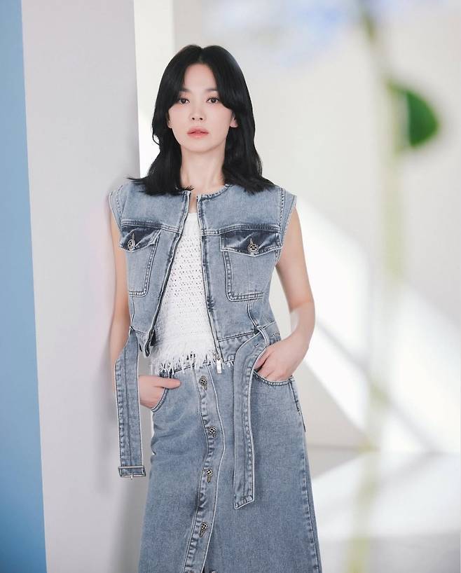 특히 자연광 아래 빛나는 화이트 셔링 슬리브리스 탑과 슬림한 H라인 스커트 조합은 송혜교 특유의 청초한 미모를 극대화시켰으며, 전체적으로 장식은 덜고 실루엣과 소재로 완성도를 높인 ‘완성형 미니멀룩’으로 시선을 모았습니다.