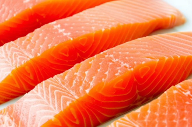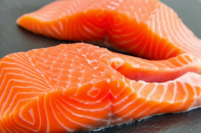 색깔: 선명한 주황색을 띠는 연어가 신선합니다. 너무 창백하거나 어두운 색깔의 연어는 피하는 것이 좋습니다.