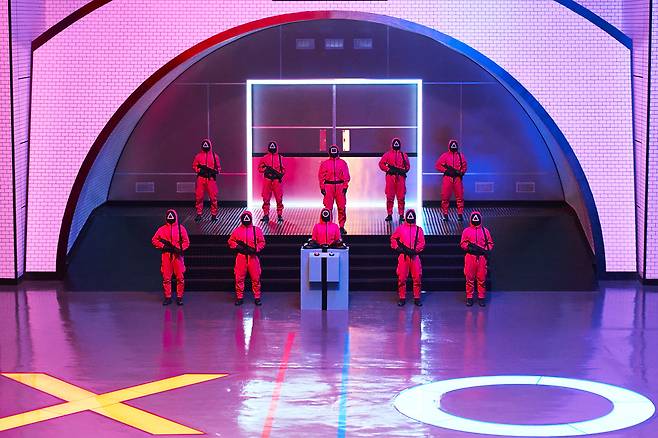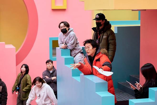 지난해 12월 7일, <오징어 게임> 시즌2 세트장의 일부가 국내외 취재진에게 공개됐다. 이날 참석한 기자들은 버스에 올라 촬영장에 도착하는 때까지 목적지에 대한 고지를 전혀 안내받지 못했다. 넷플릭스 역대 최고 인기 시리즈인 만큼 보안도 최고 수준이었다. 버스 창가를 스치는 풍경들을 이정표 삼아 장소를 짐작하며 도착한 곳은 대전 엑스포 공원 내에 마련된 스튜디오였다.