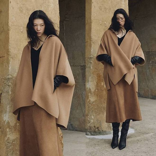 ↑사진 = 모델 정청솔이 착용한 '쉬즈미스' 카멜 코트