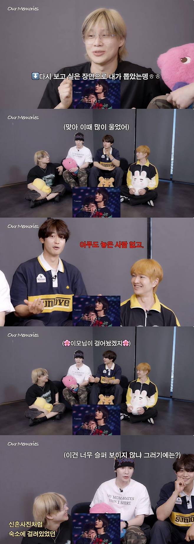 태민은 "우리가 항상 누구 집 가면 신혼 때 사진을 걸어놓지 않냐. 그런 것처럼 저 사진이 있었다"고 말했고 키는 "그렇다기엔 너무 슬퍼 보이지 않냐"고 밝혔다. 온유 역시 "진짜 그때 너무 슬프게 울었다. 엉엉대면서"라고 밝혔다.