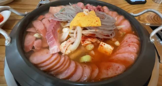 이곳의 부대찌개는 햄이 매우 다양하고 풍성하게 들어 있어 먹는 내내 인안이 즐겁다.