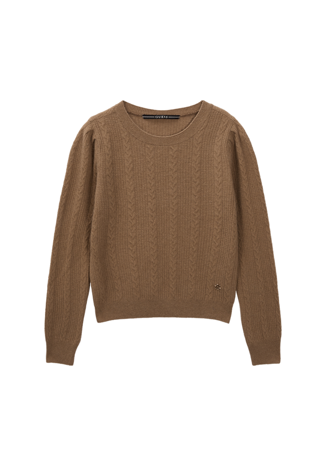 여성 퍼프소매 라쿤스웨터_CAMEL
