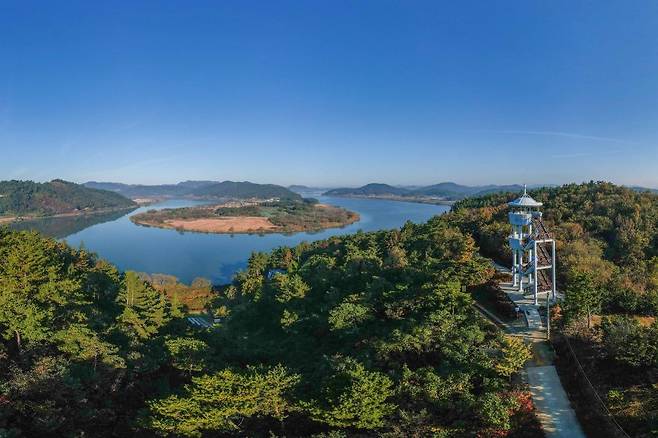 U자 모양으로 굽이치는 영산강과, 그 강을 따라 자리한 마을의 모습이 마치 한반도 지형을 닮았다고 해서 유명해진 느러지 마을. 이곳의 하이라이트는 바로 4층 높이의 느러지 전망대인데요.