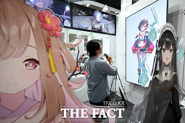 [더팩트ㅣ서예원 기자] '2025 서울팝콘'이 12일 오전 서울 강남구 코엑스에서 열린 가운데 참가자가 버츄얼 아티스트와 팬미팅을 하고 있다.