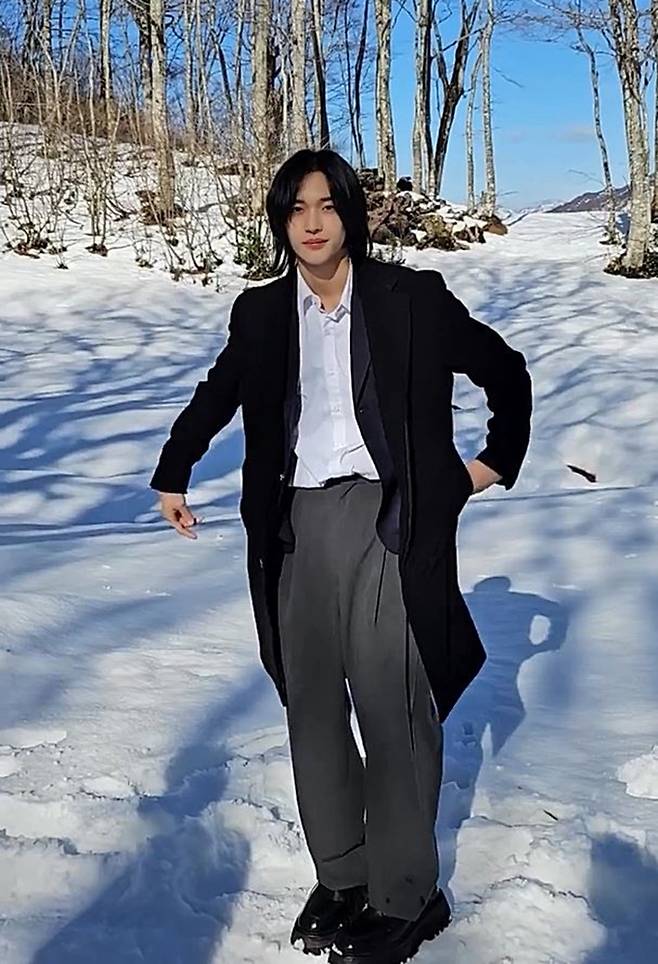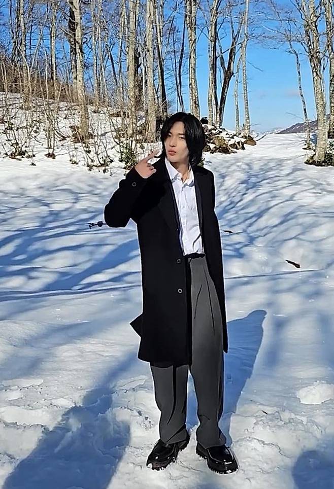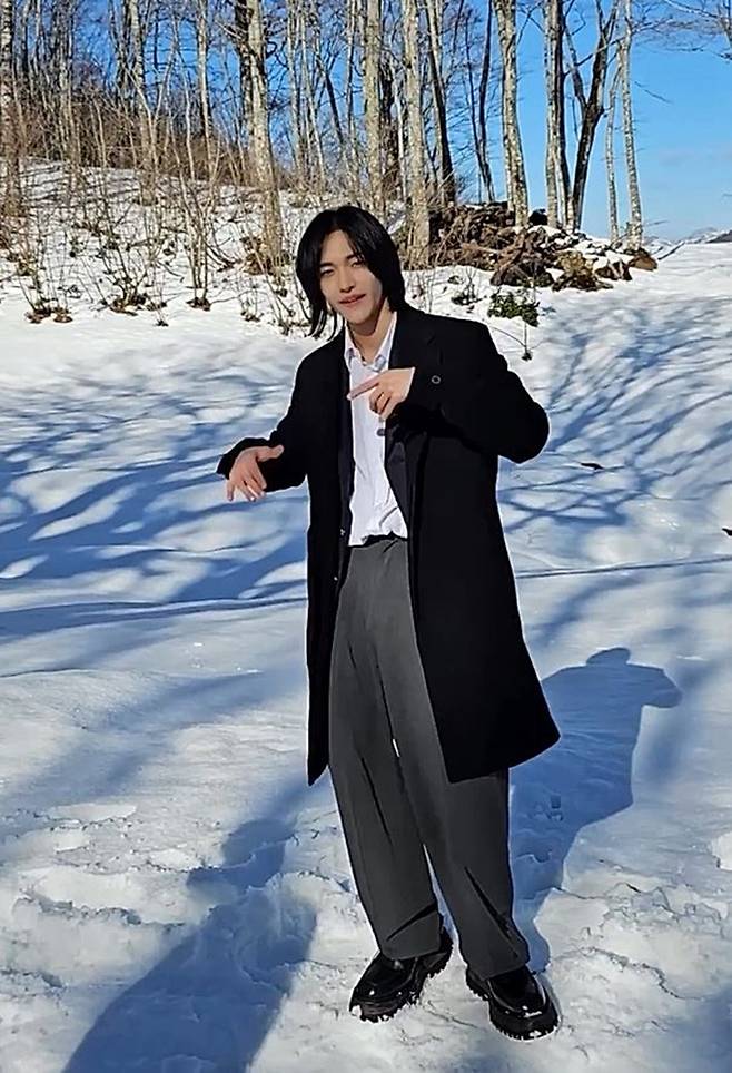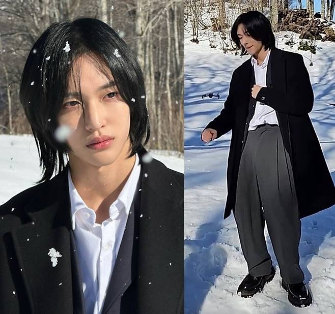 공개한 사진과 영상에서 원빈은 그레이 투턱 팬츠와 화이트 셔츠에 블랙 롱코트의 얼죽코 스타일로 댄스에 빠져있는 겨울 멋쟁이의 모습을 노출했다.