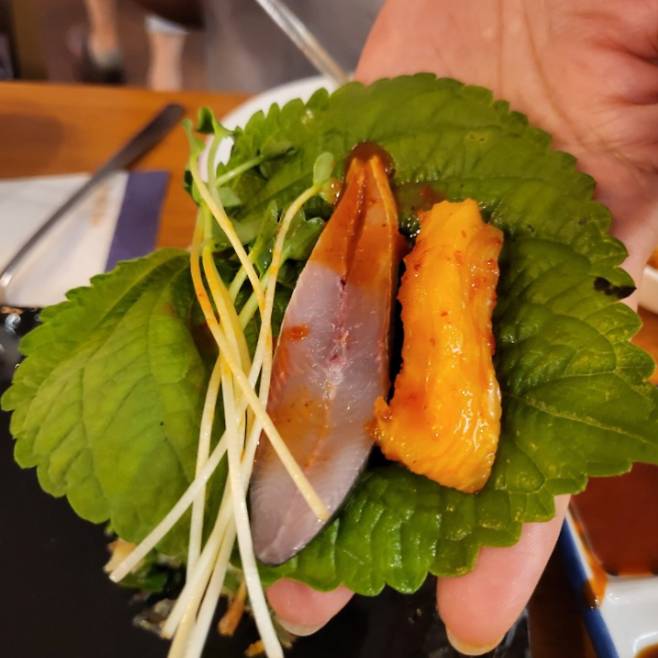 전어철에는 전어 메뉴만 주문이 가능한 맛집이다. 이곳에서는 전어회와 전어회 무침 조합으로 주문해보자. 먼저 막장에 초장과 고추냉이를 섞은 일명 ‘마약 막장’을 요청할 수 있는데 이 막장에 전어회를 찍어 즐긴다. 다음으로 새콤하고 매콤한 전어회 무침으로 살짝 느끼해진 입 안을 정리하고 나서, 다 먹어갈 때쯤 공기밥을 시킨다. 회 덮밥처럼 먹고 싶다고 말하면 김, 깨, 참기름도 같이 주기 때문에 공기밥 가격으로 비빔밥까지 즐길 수 있다. 그러니 밥 먹을 배를 꼭 아껴 두기를 바란다.