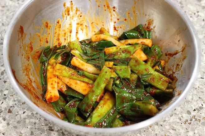 보통 계절이 바뀌면 입맛이 없기 마련이죠. 그래서 봄나물 요리 중에는 입맛을 돋워주는 식감과 맛을 내는 것들이 많아요. 대표적인 풋마늘무침도 그런 맛이니 봄나물 필요할 때 한 번 무쳐보세요. 다듬기만 되어 있으면 어렵지 않게 만들 수 있답니다.