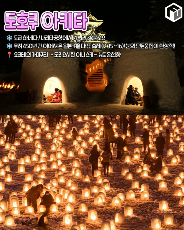 도쿄에서 대중교통으로 4시간 30분 정도 떨어진 위치에 위치한 아키타현에서는 매년 겨울 ‘카미쿠라 마츠리’(2025.2.15~16)라는 일본의 대표적인 겨울 축제가 개최됩니다.