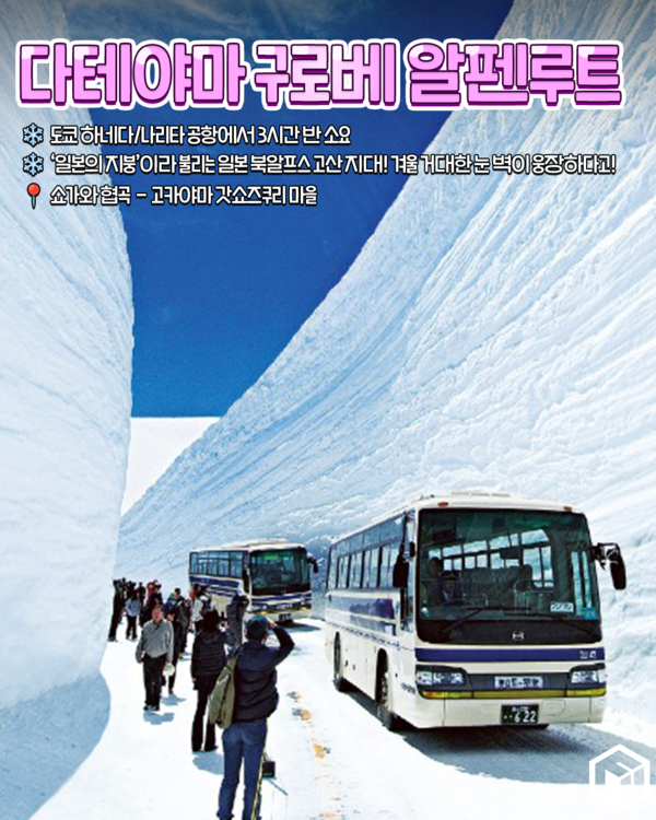 '일본의 지붕'이라 불리는 일본 북알프스 고산 지대 다테야마 구로베 알펜루트는 겨울 믿기 힘든 장엄한 풍경으로 일본 전역에서 많은 여행객들이 찾는 여행지입니다.