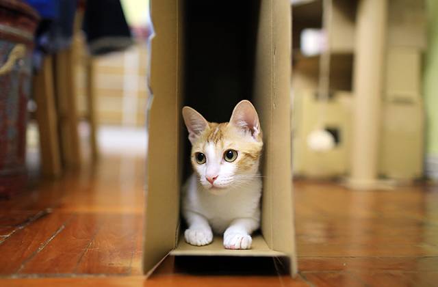 실내에서 생활하는 고양이는 동굴이나 바위 같은 틈새가 주변에 없으므로 스스로 좁은 장소를 찾는 경향이 있습니다. 이때 고양이가 주목하는 좁은 장소가 빈 택배 상자나 쇼핑백, 물건과 물건 사이 등의 틈새.