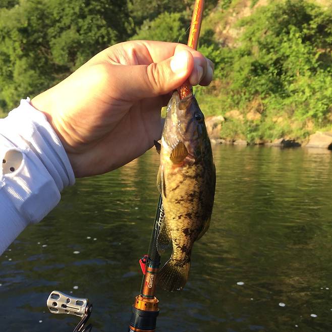 계류에서 볼락 사이즈의 꺽지와 쏘가리를