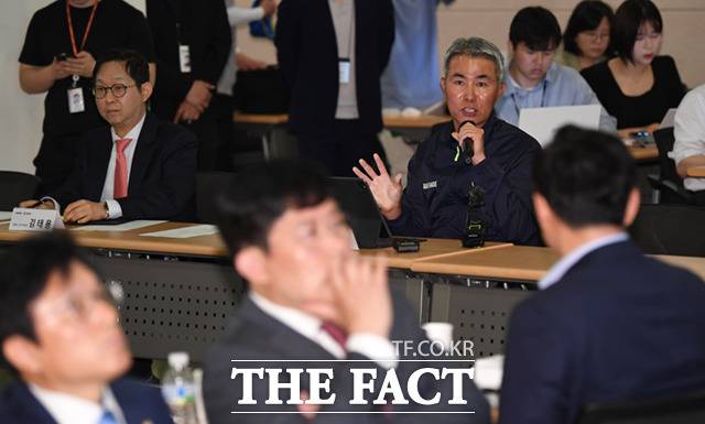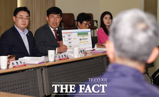 [더팩트ㅣ성남=이새롬 기자] 김성원 국민의힘 코인게이트 진상조사단장이 19일 경기도 성남시 분당구 위메이드 본사에서 열린 2차 회의에서 발언하고 있다.