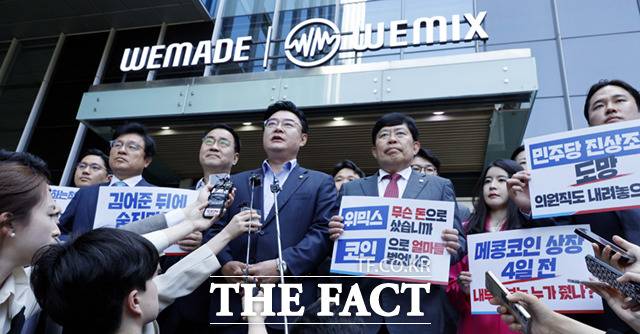 이날 국민의힘 코인게이트 진상조사단은 김남국 무소속 의원의 '위믹스' 가산자산(코인) 보유 논란 관련 조사를 위해 위메이드 본사를 방문, 장현국 대표로부터 현황 보고를 받았다.