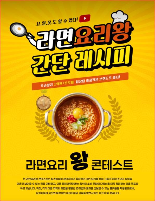 우승자에게는 무려 1억 원의 상금이 주어지며,입상작은 실제 라면 브랜드로 출시될 예정입니다.