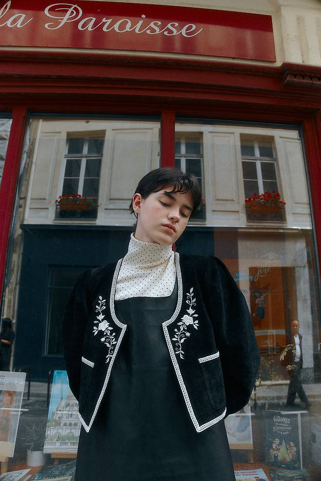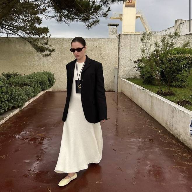 트위드 자켓과 함께 고급스럽고 빈티지한 무드의