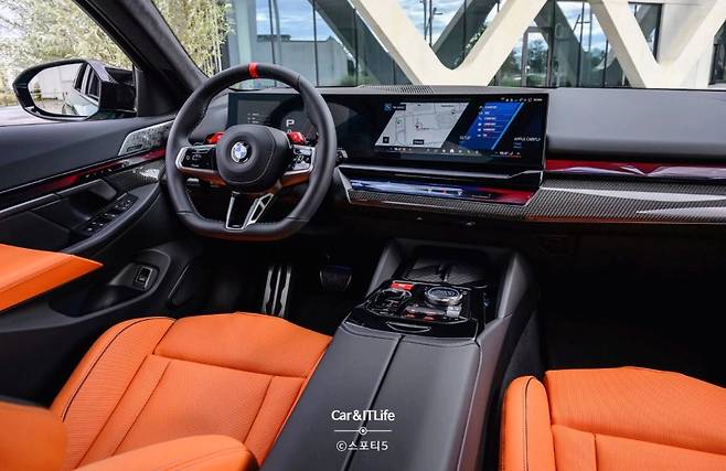 운전석에 앉으면, 새롭게 디자인된 후면 차체가 거의 느껴지지 않습니다. 곡선형 계기판과 터치스크린 조합의 대시보드는 일반 5시리즈와 동일하지만, M5는 M 스티어링 휠, M 전용 빨간색 시동 버튼, M 브랜드 iDrive 다이얼로 차별화를 꾀했습니다. 또한, 트랙 데이에서도 충분한 지지력을 제공하며, 6시간의 고속도로 주행에도 편안함을 유지해주는 스포츠 시트가 기본으로 제공됩니다.