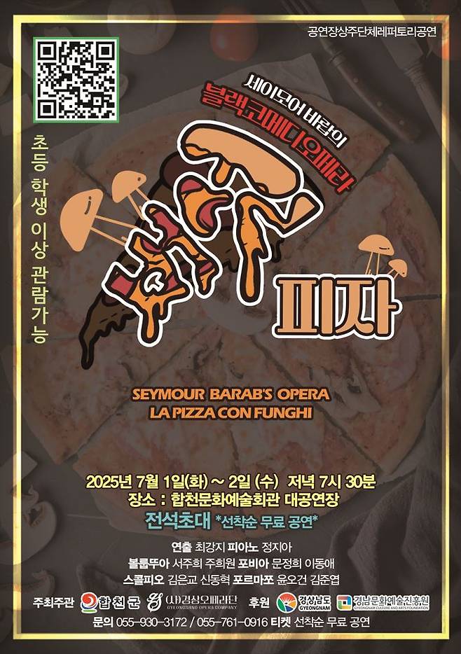 합천군은 7월1일과 2일 양일간 저녁 7시30분 합천군문화예술회관에서 블랙코메디 오페라 '버섯피자' 공연을 개최한다.