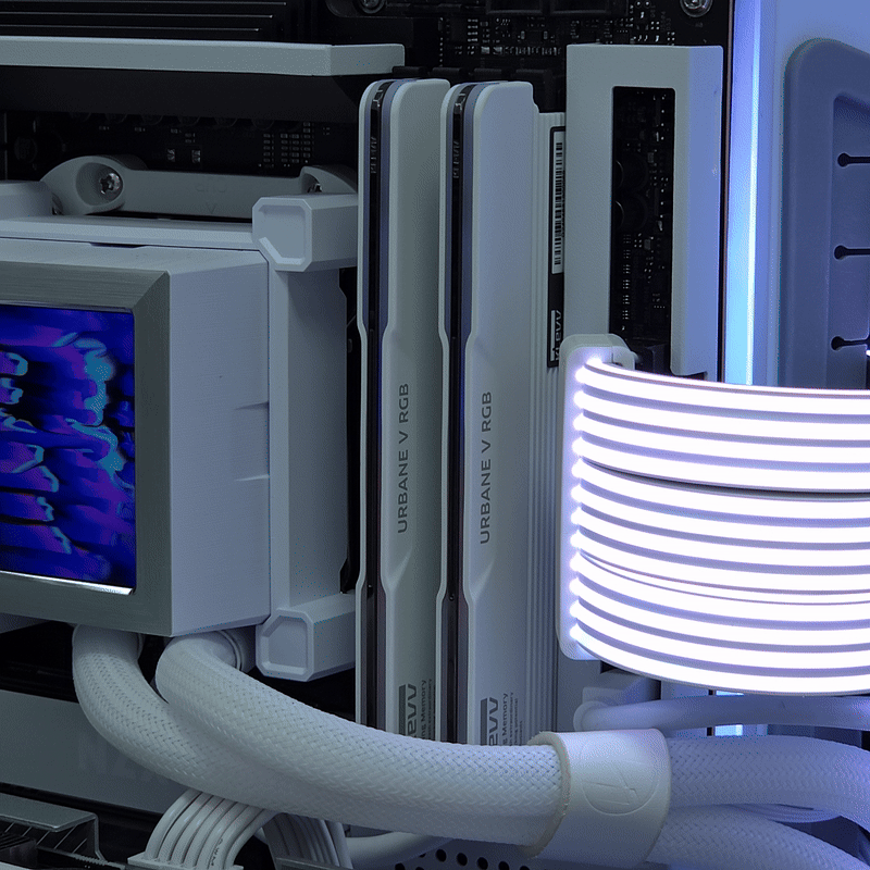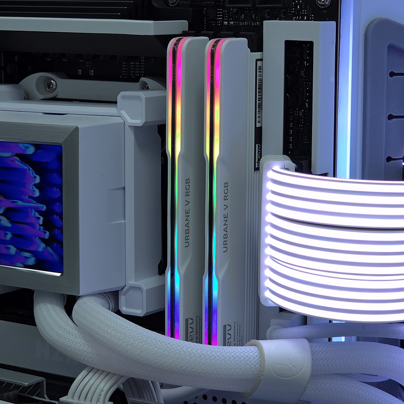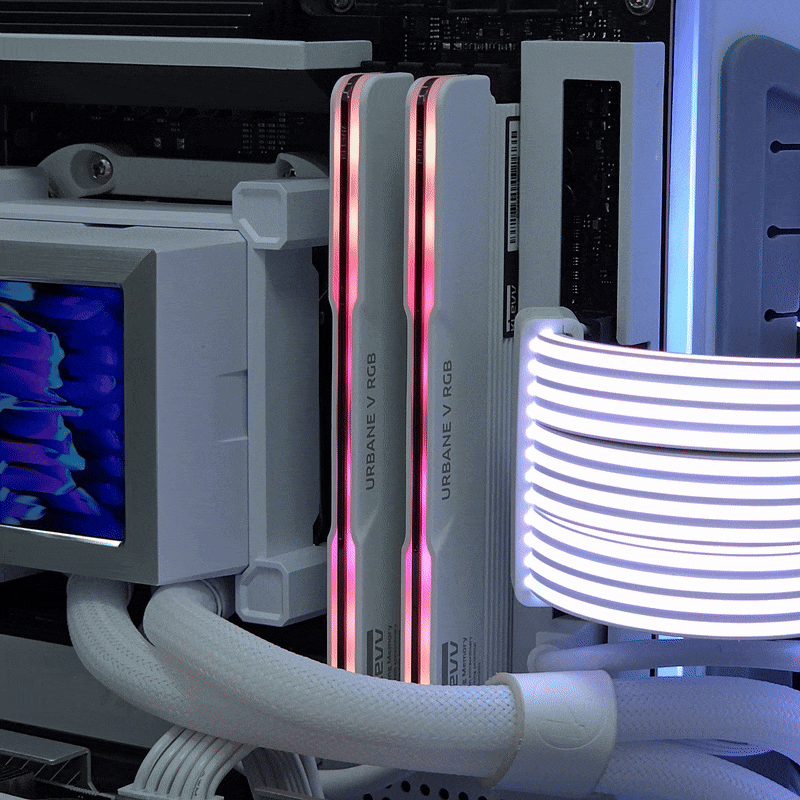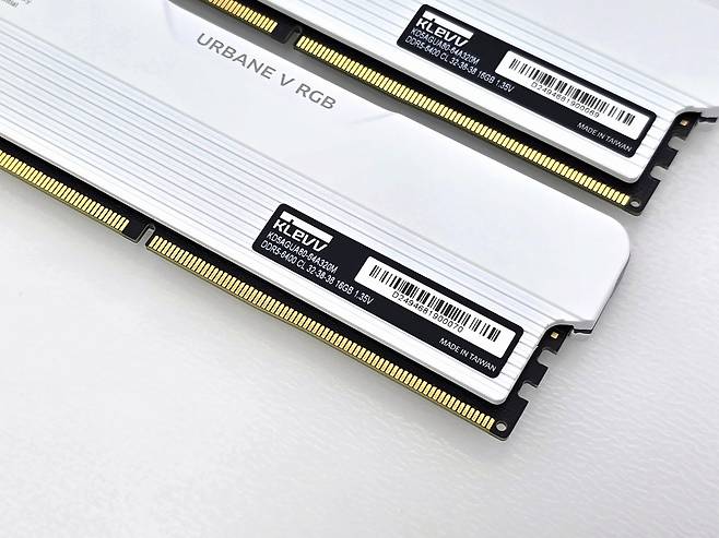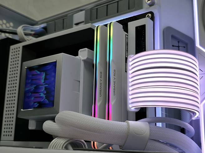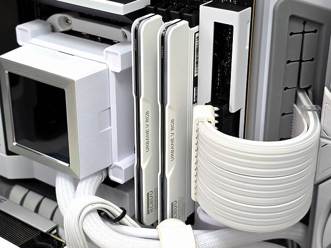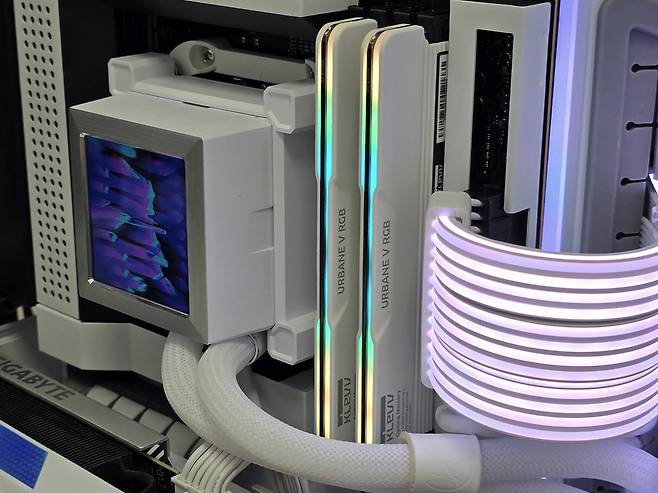 이번 URBANE V RGB 메모리는 무광 화이트 컬러의 알루미늄 히트싱크를 적용해, 은은하면서도 깔끔한 느낌을 줍니다. 손에 쥐었을 때 매끄러운 촉감이 느껴질 정도로 마감이 뛰어나며, 시각적으로도 상당히 고급스럽습니다.