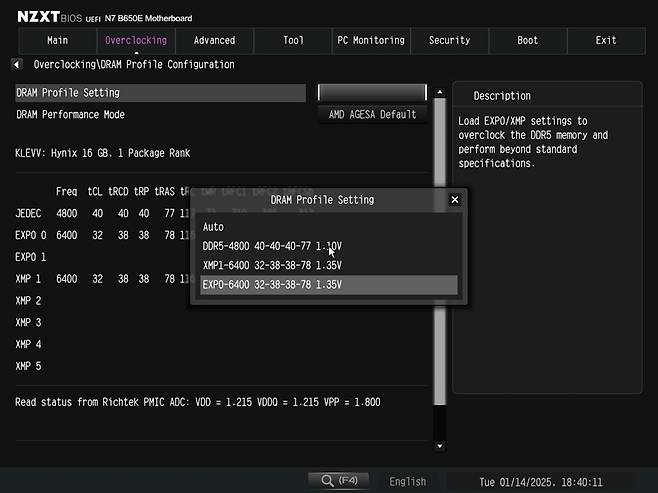 설치 후 바이오스에 진입한 뒤, DRAM PROFILE 항목을 인텔의 경우 XMP1로, AMD의 경우 EXPO로 설정해 주면 원클릭 자동 오버클럭까지 완료가 됩니다.