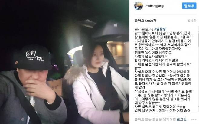 두 사람은 금실이 워낙 좋다 보니 오해가 생기기도 했는데요. 2017년 3월 임창정이 자신의 인스타그램에 아내가 운전한 사진을 올린 것이 문제가 되었습니다. 해당 게시물을 본 일부 네티즌들이 만삭의 아내에게 운전시킨 것이 경솔하다며 비판하고 나섰는데요. 임창정은 '자택에서 가까운 곳에서 지인과 식사하고 돌아오는 길에 와이프가 운전하길 자처했다.'라며 해명하기도 했습니다. 한편 임창정은 지난 2018년 8월 SBS '미운 우리 새끼'에 출연해 '지금 제주도에서 아들 넷이랑 같이 생활하고 있다.'라며 근황을 전했습니다.
