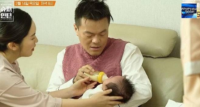 박진영은 최근 결혼 6년 만인 2019년 1월 득녀하며 아빠가 된 소감을 자작곡 '꽉 잡은 이 손'에 담아냈는데요. 박진영은 이전에도 자신의 곡 '너뿐이야'라는 곡을 쓱 만든 주인공이 지금의 아내임을 밝힌 적이 있습니다.