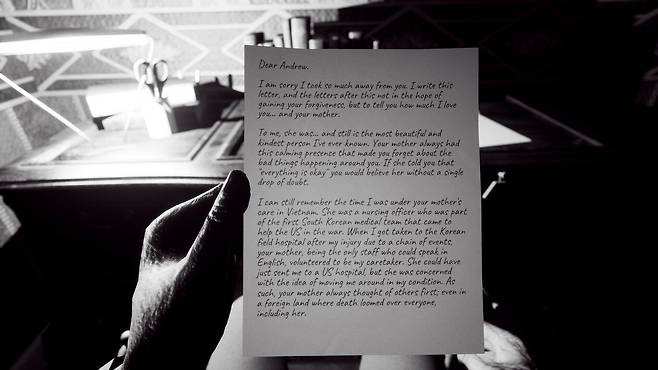 '버나드 쏜의 편지(이하 LBT)'는 전동 휠체어를 탄 미국 70대 참전용사를 주인공으로 내세운 스토리 중심 심리 공포 게임이다. 움직임이 불편한 노인 버나드 시점에서 게임은 대부분 휠체어를 탄 일인칭 시점으로 진행된다. 움직임의 제약을 극복하기 위해 각종 도구를 활용, 여러 종류의 난관을 퍼즐 풀듯 극복하는 것이 게임플레이 주 요소 중 하나다.