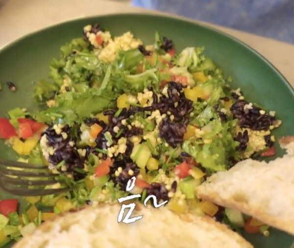 이 샐러드는 통밀빵, 아보카도, 흑미밥, 파프리카 등 다양한 건강 식품으로 구성돼 있다.