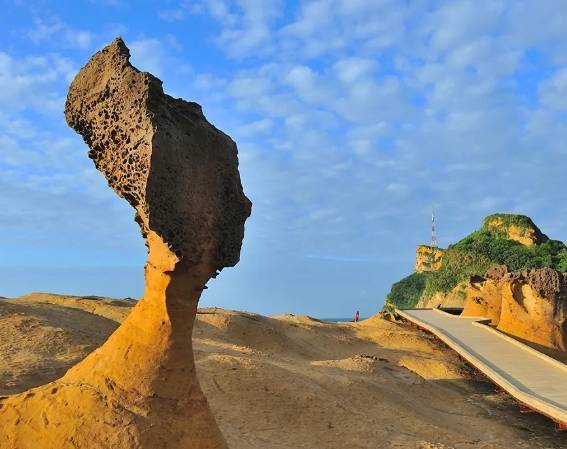 예류지질공원은 바닷가에 있는 수많은 화암들이 바닷바람과 파도에 의해 변형되어 진풍경을 이루고 있는데요. 이곳의 바위들은 세계 지질학계에서 중요한 해양 생태계 자원으로 평가받는 한편, 푸른 바다와 침식된 산호 조각물들이 함께 어우러져 자연이 그려낸 한 폭의 그림 같은 풍경을 보여 줍니다.